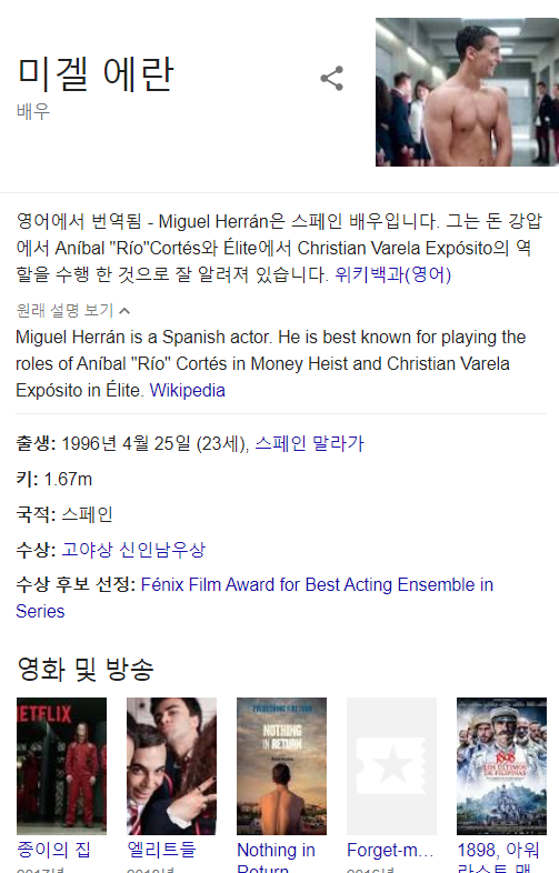 종이의 집을 봤다면 너무 익숙한 우리 "리오" 크리스티안! 오늘 배우 이름 처음 알았다. 미겔 에란(Miguel Errán), 그리고 생각보다 너무 어려서 놀랐다! 내가 이제 안 어린건가,,,1996년생에 놀라고 또 그의 키에 한 번 더 놀랐다,,,, !! 167cm?! 근데 절대 그렇게 작아보이지는 않는다. 이게 비율이 좋은 사람들의 특징인가...?