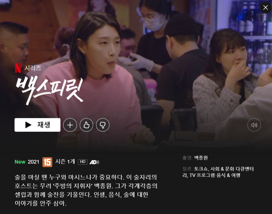 내가 한지민이랑 술 마시는 것은 아니지만, 술 한 잔하면서 개인적으로 할 법한 이야기들을 하면서 인생 이야기를 하는 그 술자리의 찐맛을 백스피릿에서 보여주는 것 같다.